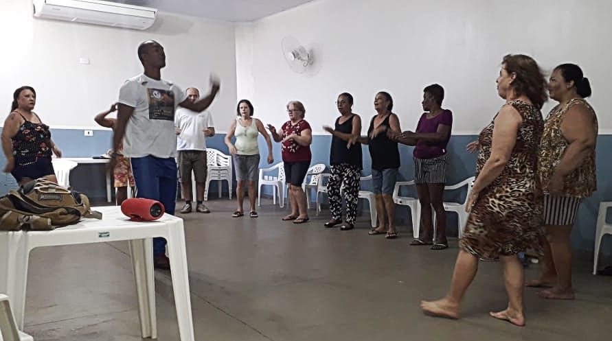 As aulas iniciaram no último dia 18 para os assistidos e participantes das demais oficinas e atividades oferecidas pelo SCFV de Ouroeste e Arabá. Capoterapia é uma terapia que utiliza elementos da capoeira, tais como música, dança e instrumentos.