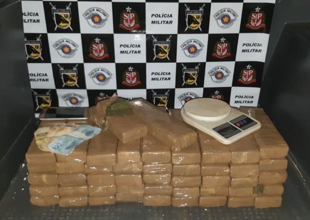 O jovem contou à polícia que escondia droga em uma mata próxima ao bairro Estância São Pedro. No local, a polícia encontrou mais 45 tabletes de maconha que estavam dentro de uma caixa de isopor e uma balança de precisão.