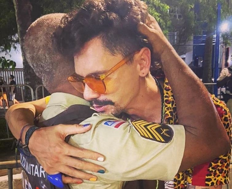 “Esse abraço aconteceu depois de eu pedir uma ajuda, naturalmente começamos uma conversa, ele falou sobre o peso da farda, sobre sua luta em ser honesto, e bom, em meio a tanta pressão, eu falei sobre meus medos, sobre não me sentir seguro com a polícia, sobre homofobia e desrespeito. Ele tirou o capacete, me pediu esse abraço e prometeu não deixar nenhum mal acontecer à sociedade gay ou qualquer indivíduo próximo, enquanto tiver presente. [Foi] a primeira vez que olhei nos olhos de um policial, a primeira vez que acreditei nessa representação de segurança. Por um mundo maior, como esse cara.”