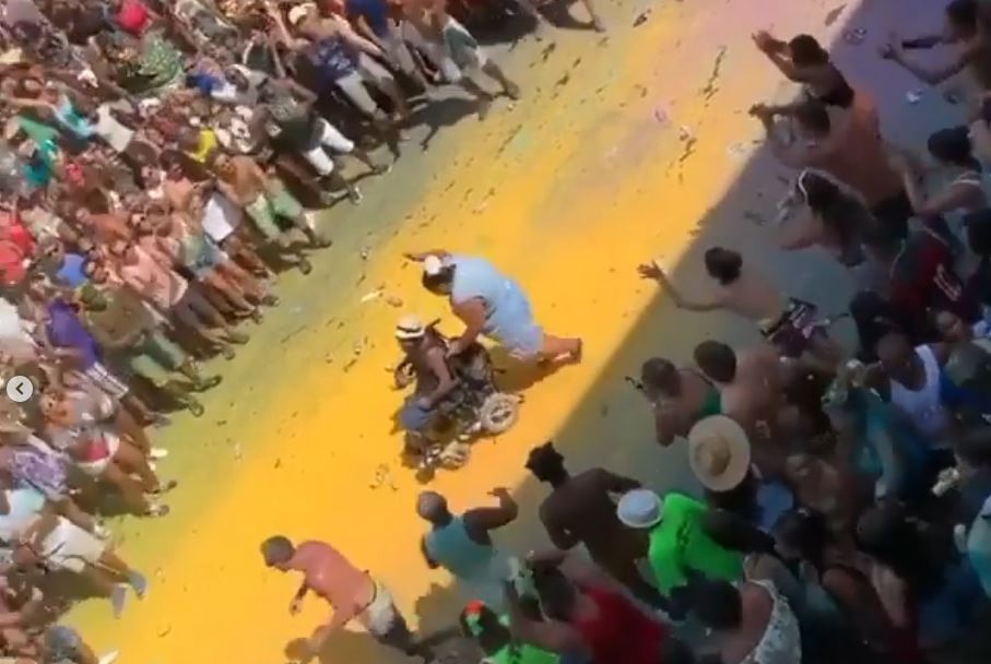 5. Cadeirante ‘pula’ em ‘pipoca’ do trio elétrico do cantor Saulo