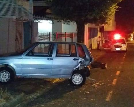 O acidente aconteceu na rua Pará - defronte a Prefeitura. O veículo Fiat Uno estava devidamente estacionado do lado direito da via e o motorista estava em uma residência ali próxima.