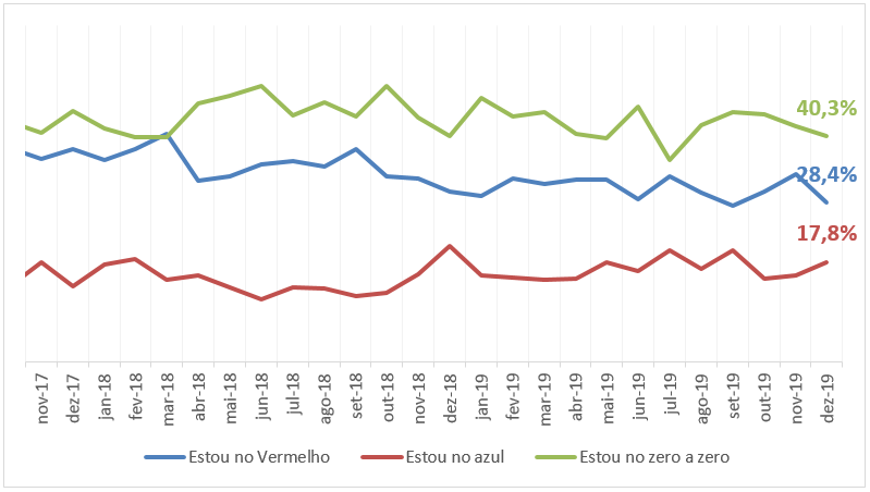 Embora a situação da economia brasileira tenha se mostrado mais sólida no último trimestre do ano passado, três em cada 10 brasileiros (28%) deram adeus a 2019 no vermelho, segundo pesquisa realizada pela Confederação Nacional de Dirigentes Lojistas (CNDL) e pelo Serviço de Proteção ao Crédito (SPC Brasil).