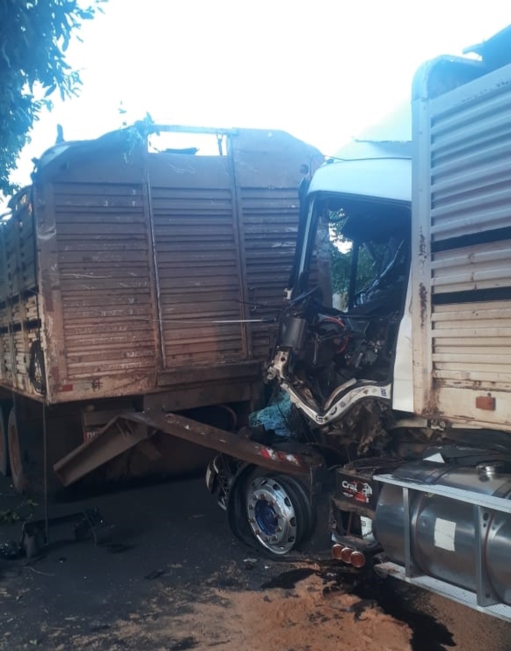 Um caminhoneiro ficou ferido em um acidente entre dois caminhões carregados com bois neste domingo (8), na Avenida Presidente Roosevelt, em Santa Salete (SP).