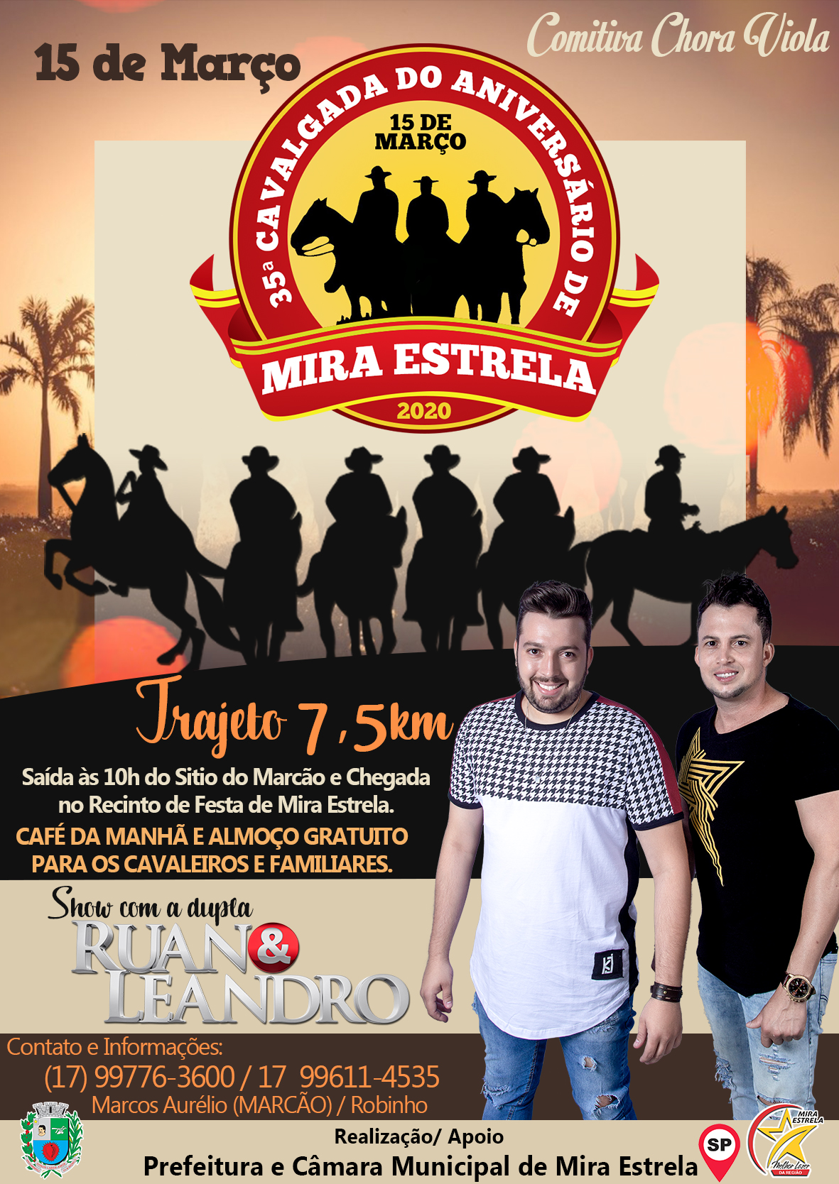 Em comemoração aos seus 55 anos de emancipação político-administrativo, o município Mira Estrela prepara a 35ª Cavalgada, com expectativa de reunir mais de 50 comitivas e um público de cerca de 4 mil pessoas.