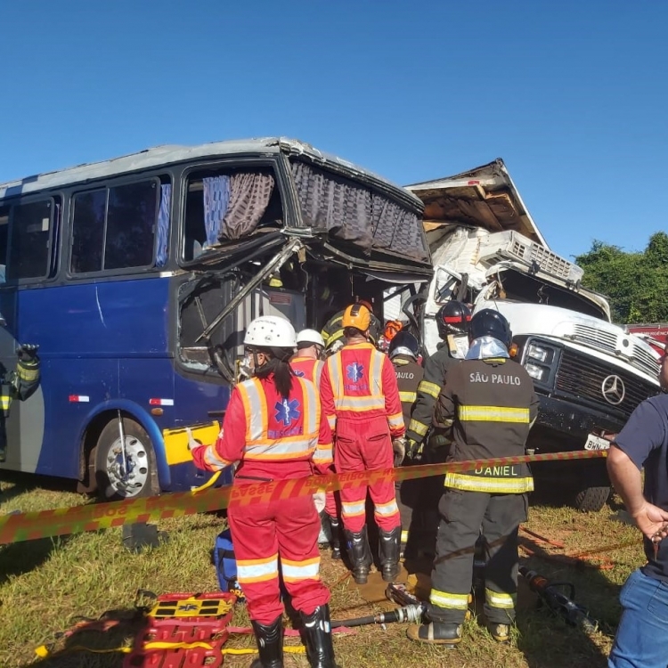 O condutor do ônibus ainda está preso nas ferragens. Segundo informações preliminares apuradas pela Polícia Rodoviária Federal, são 30 vítimas, entre feridos leves e graves.