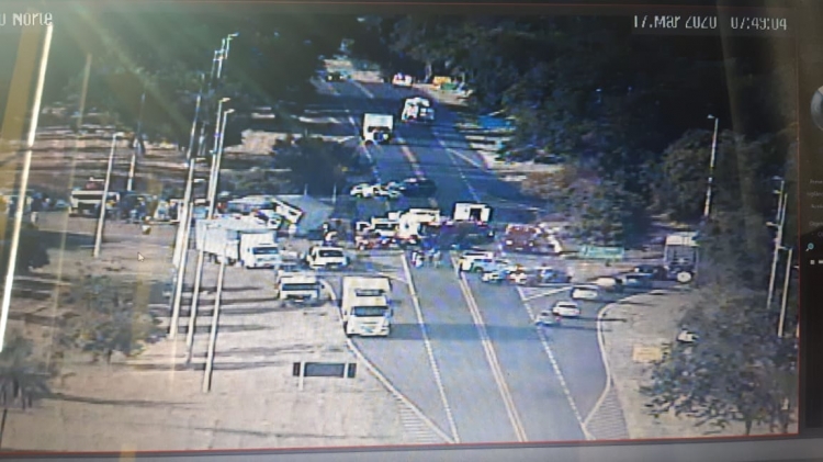 Acidente com ônibus e caminhão paralisa a BR 153 no trevo de Castores