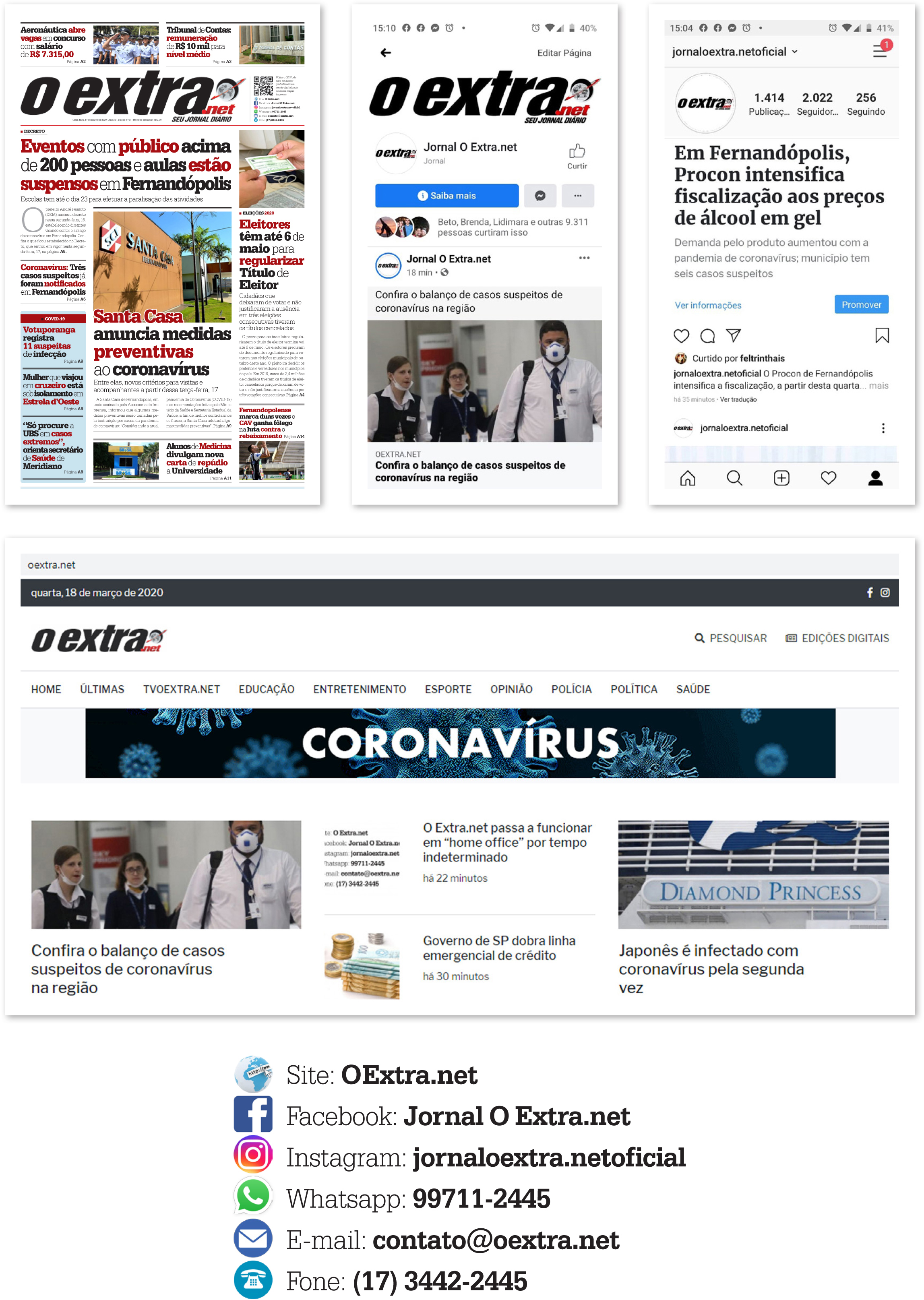 A medida é adotada em virtude da pandemia do Coronavírus, tem validade por tempo indeterminado e visa, além da preservação da integridade física e da saúde de seus colaboradores, fornecedores, articulistas, anunciantes e leitores, também tentar minorar os efeitos de difusão do vírus em nossa cidade e região, colaborando com as ações sanitárias públicas.
