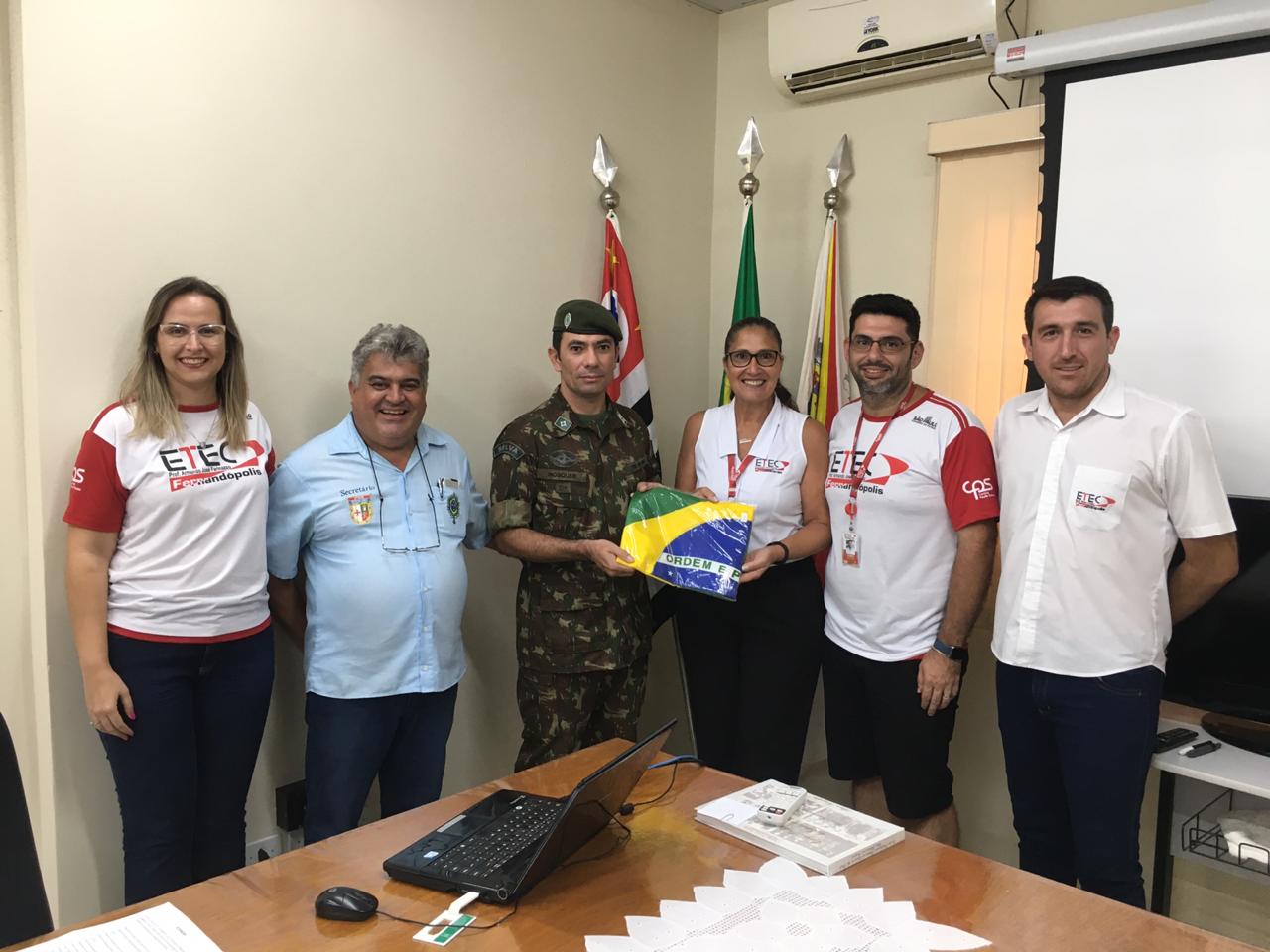 O chefe de instrução do Tiro de Guerra de Fernandópolis, 1° Sargento Adilson Alezando Mosquer, visitou na última semana escolas estaduais e municipais na semana passada para realizar a entrega de 12 bandeiras do Brasil, seguindo ordem do Comandante Militar do Sudeste, General Amaro. Foram entregues três mil bandeiras em todo o estado de São Paulo.