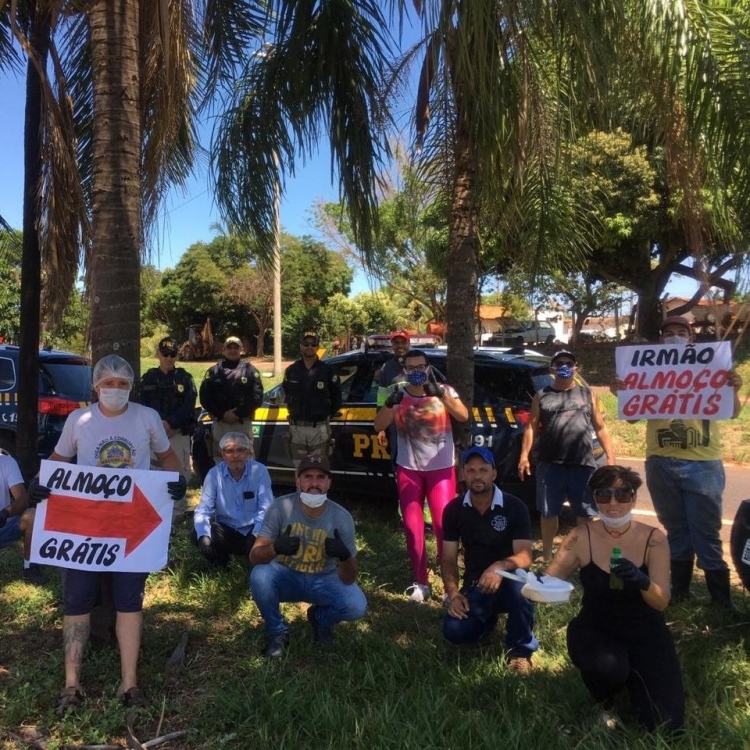 A Polícia Rodoviária Federal de Rio Preto apoiou voluntários na doação de marmitas aos caminhoneiros que passavam pela BR-153, na região. A entrega das refeições foi feita no trevo de Nova Granada.