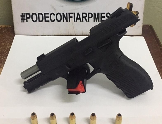 O veículo foi abordado e durante revista a pistola Taurus calibre 380 e um carregador com 11 munições foram encontrados no interior da caminhonete.