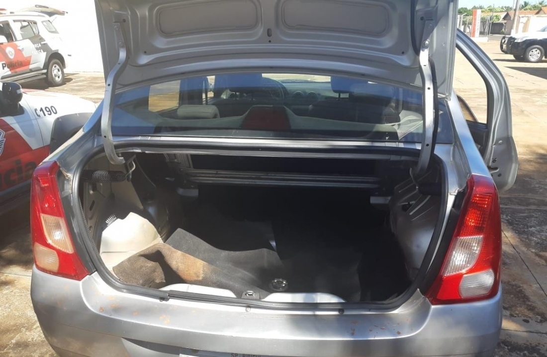 Ao perceber a chegada da viatura da PM, os quatro homens entraram no carro e tentaram fugir, mas foram bloqueados pela polícia.