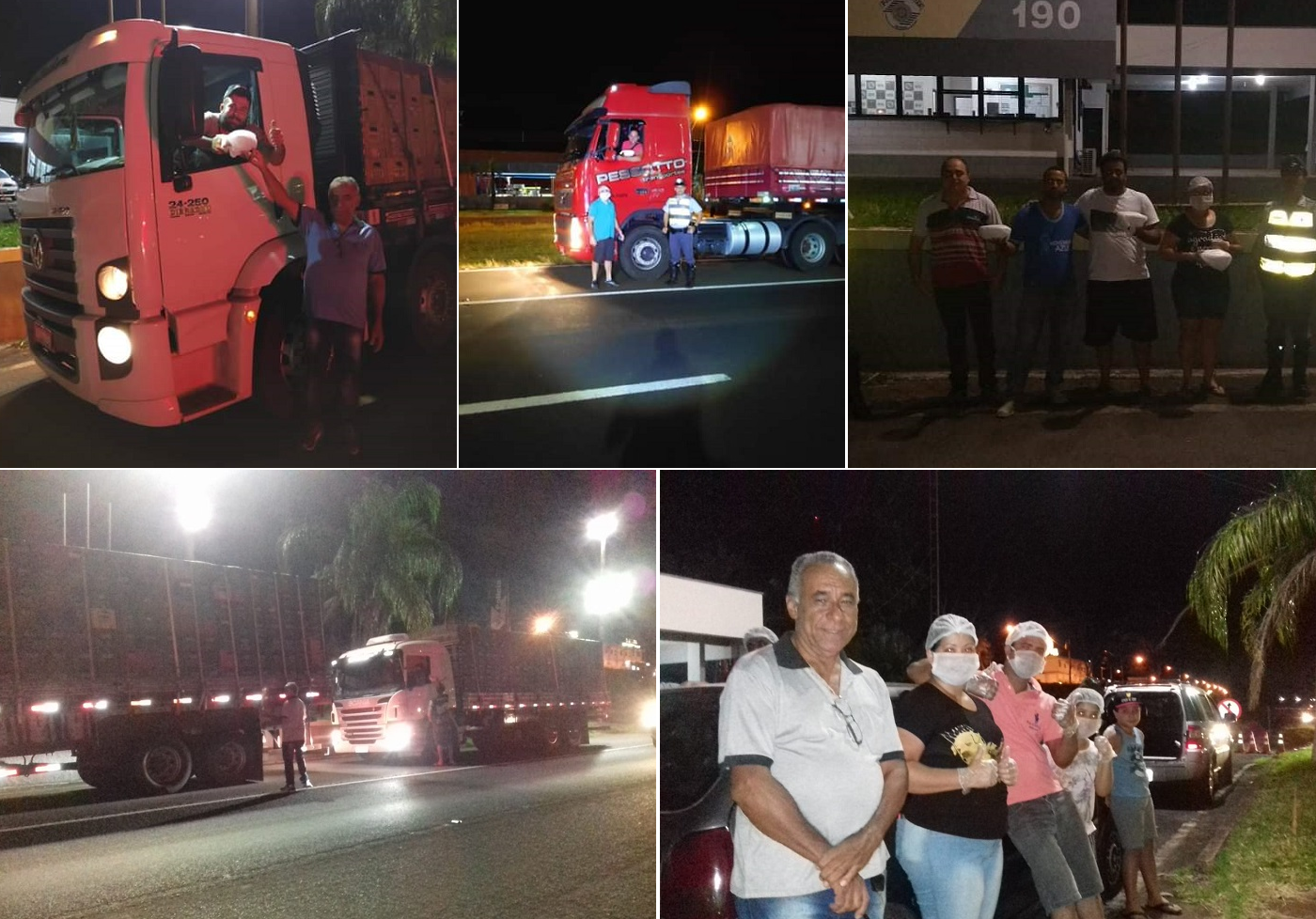 Em meio à crise gerada pela pandemia do novo coronavírus, voluntários, liderados pelos votuporanguenses, Laiane Souza, Marinete Souza, Maurício Alberico, Ricardo Pereira, Reginaldo Rocha e Nelson, dentre outros, juntamente com o apoio da Polícia Militar Rodoviária Estadual, em Votuporanga, realizam na unidade operacional da PRE, às margens da Rodovia Euclides da Cunha (SP-320), a entrega de cerca de 45 marmitex aos caminhoneiros que trafegam pela via. As informações são do Votunews.