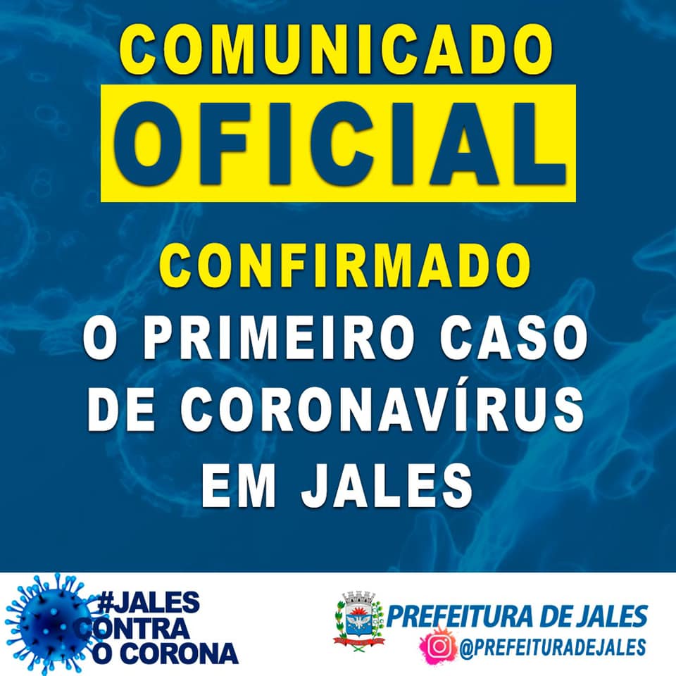 A prefeitura de Jales informou na tarde desta sexta-feita, 03, a confirmação do primeiro caso positivo de Covid-19 (Coronavírus) no município. Trata-se de um caso importado, um homem de 24 anos, que chegou na cidade na sexta-feira do dia 27 de março.