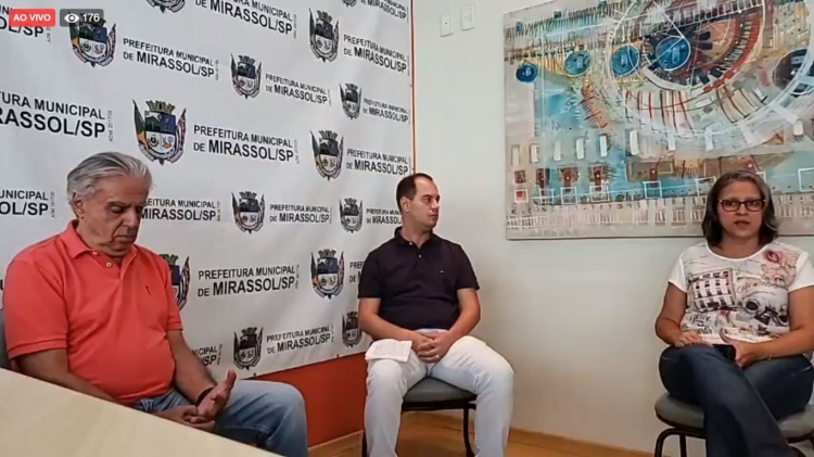 O secretário municipal de Saúde Antônio Bittar; o prefeito André Vieira e a diretora da Vigilância Epidemiológica Mara Souto. Foto: Divulgação/Câmara Municipal de Mirassol