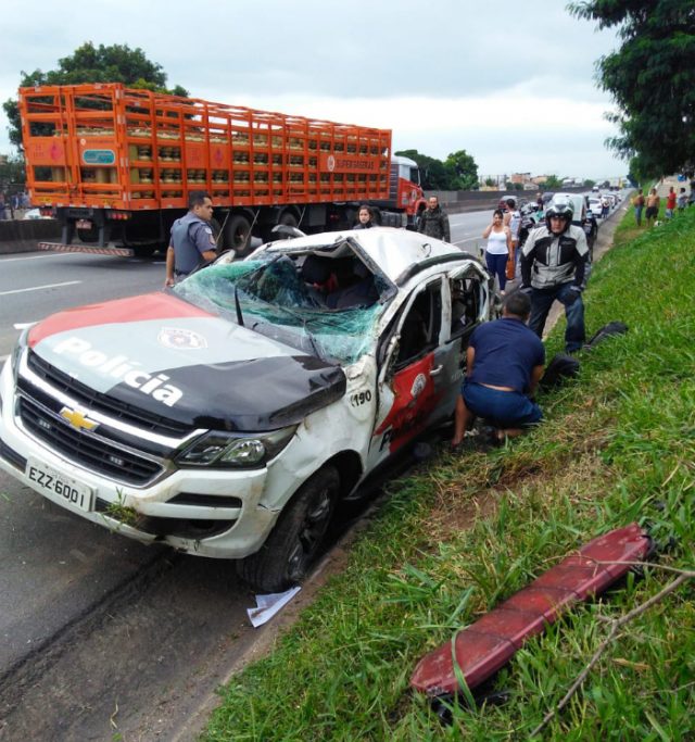 Por volta das 14h40 deste sábado (11), um policial militar morreu e outros três ficaram feridos após a viatura em que eles estavam capotar, na Via Dutra, em Aparecida.