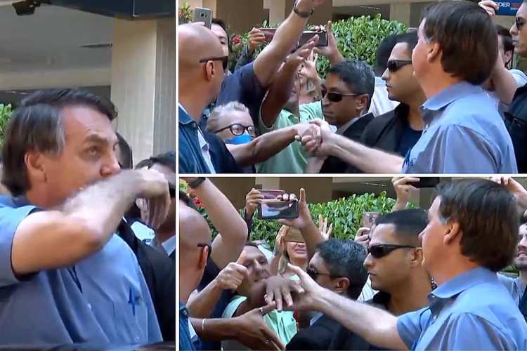 Nesta última sexta-feira (10), em outro passeio por Brasília, Bolsonaro foi cercado por moradores e, antes de entrar no carro, ignorou orientações sanitárias e, sem demonstrar nenhuma preocupação com a crise do coronavírus, primeiro coçou o nariz com o dorso da mão direita e, segundos depois, passou a cumprimentar uma idosa e outros apoiadores.