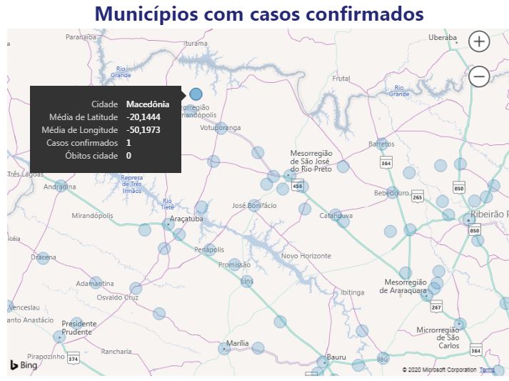 Na noite desta quinta-feira, o município aparecia no mapa que acompanha os casos de coronavírus confirmados em todos os municípios paulistas, conforme registrado por O Extra.net.