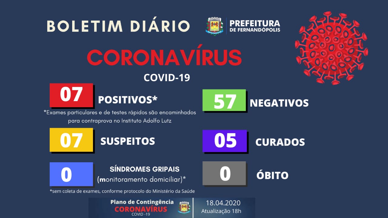 Ainda de acordo com o boletim, cinco dos casos positivos foram curados. Não há mais observação de pessoas com síndromes gripais.