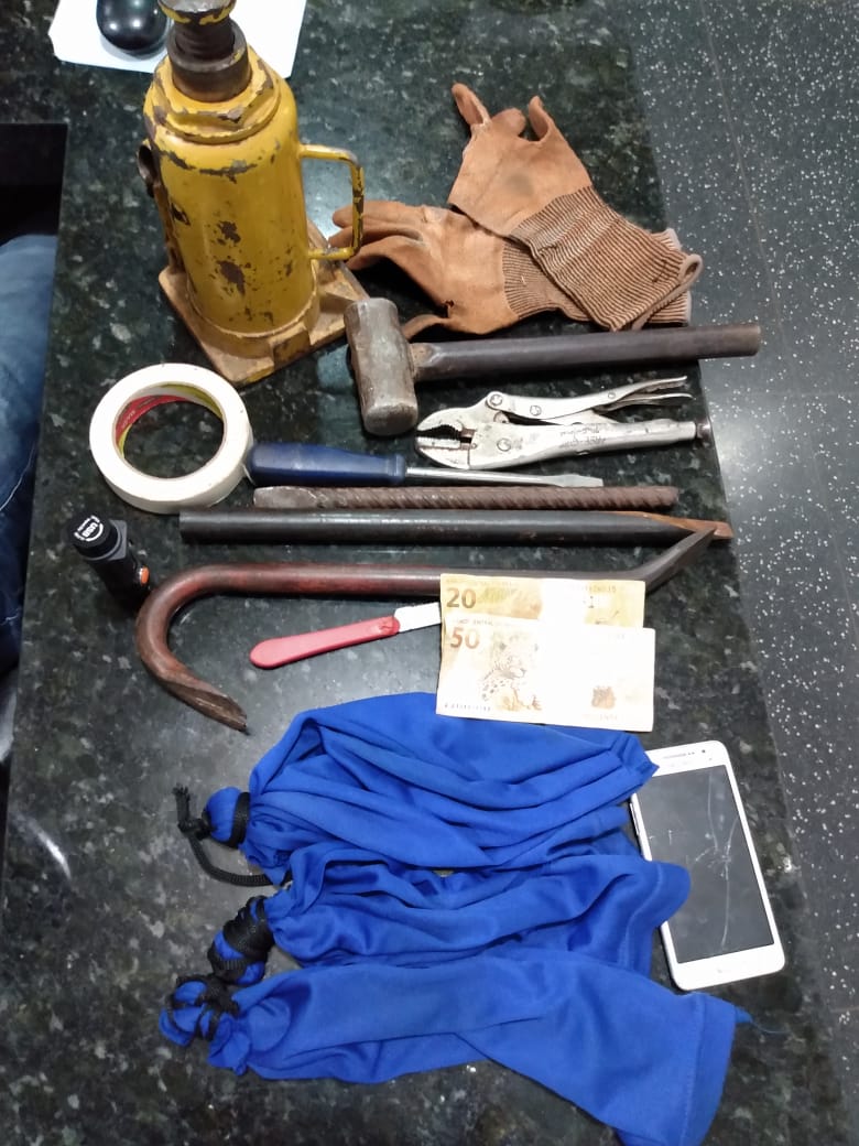 Objetos encontrados com os ladrões