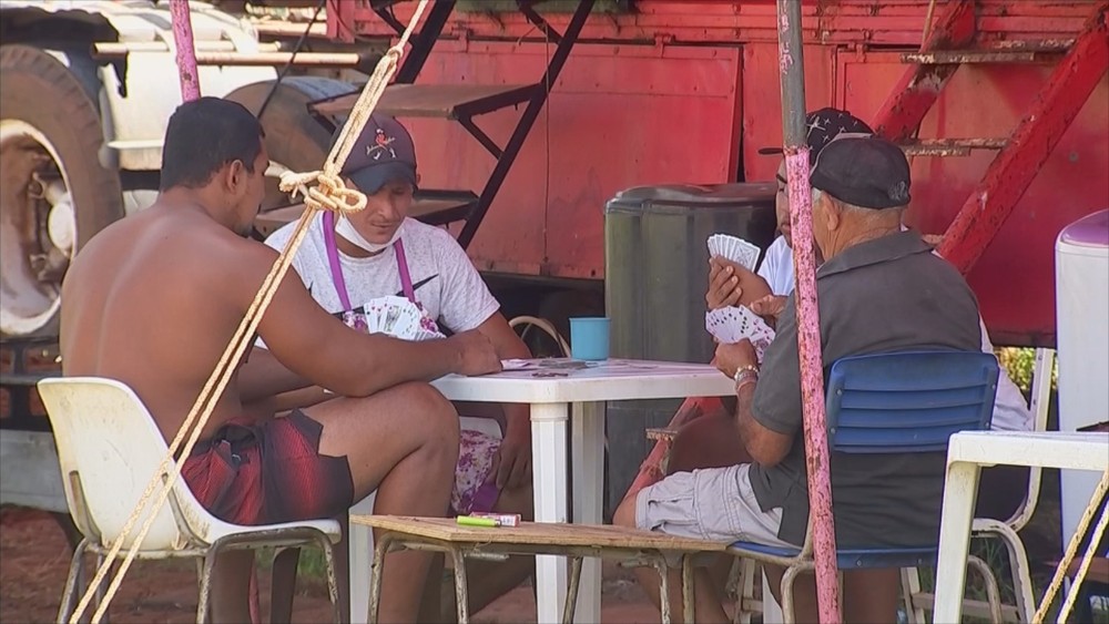 Funcionários de circo jogam baralho durante quarentena em Votuporanga