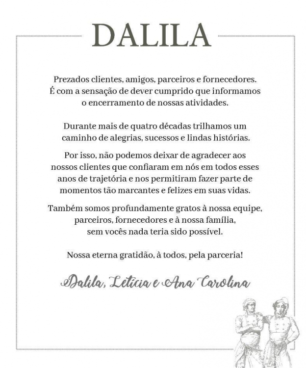 O Buffet Dalila anunciou nesta segunda-feira, 27, o encerramento das atividades em Rio Preto. Por mais de 40 anos, o local foi palco de diversos eventos como aniversários e casamentos.