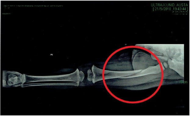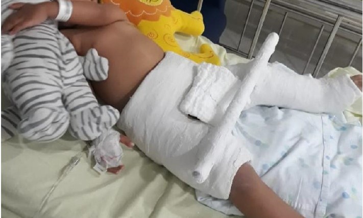 Ao chegar em casa, os pais notaram que o filho estava com a perna inchada e não conseguia ficar de pé, além de não parar de chorar. Eles levaram o menino ao hospital, local em que foi constatada fratura no fêmur da perna esquerda da criança.