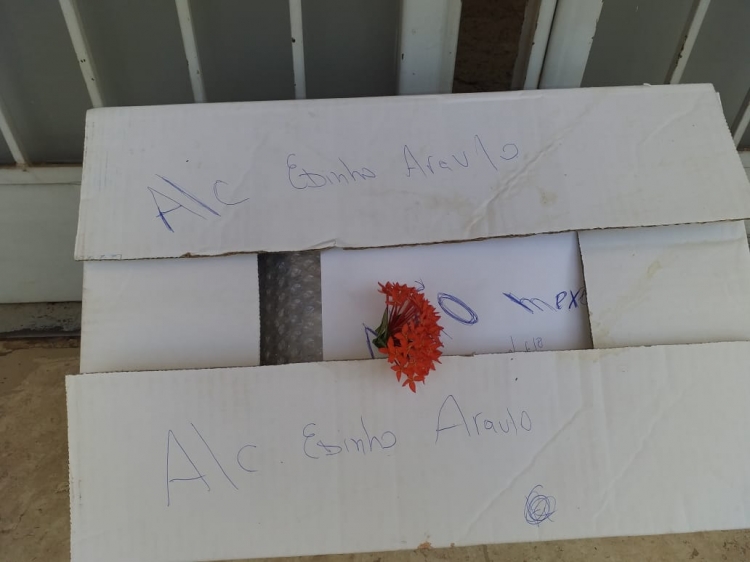 Na caixa, o homem escreveu duas vezes "A/C Edinho Araújo”. Há também uma folha branco pedindo que ninguém mexesse no pacote.