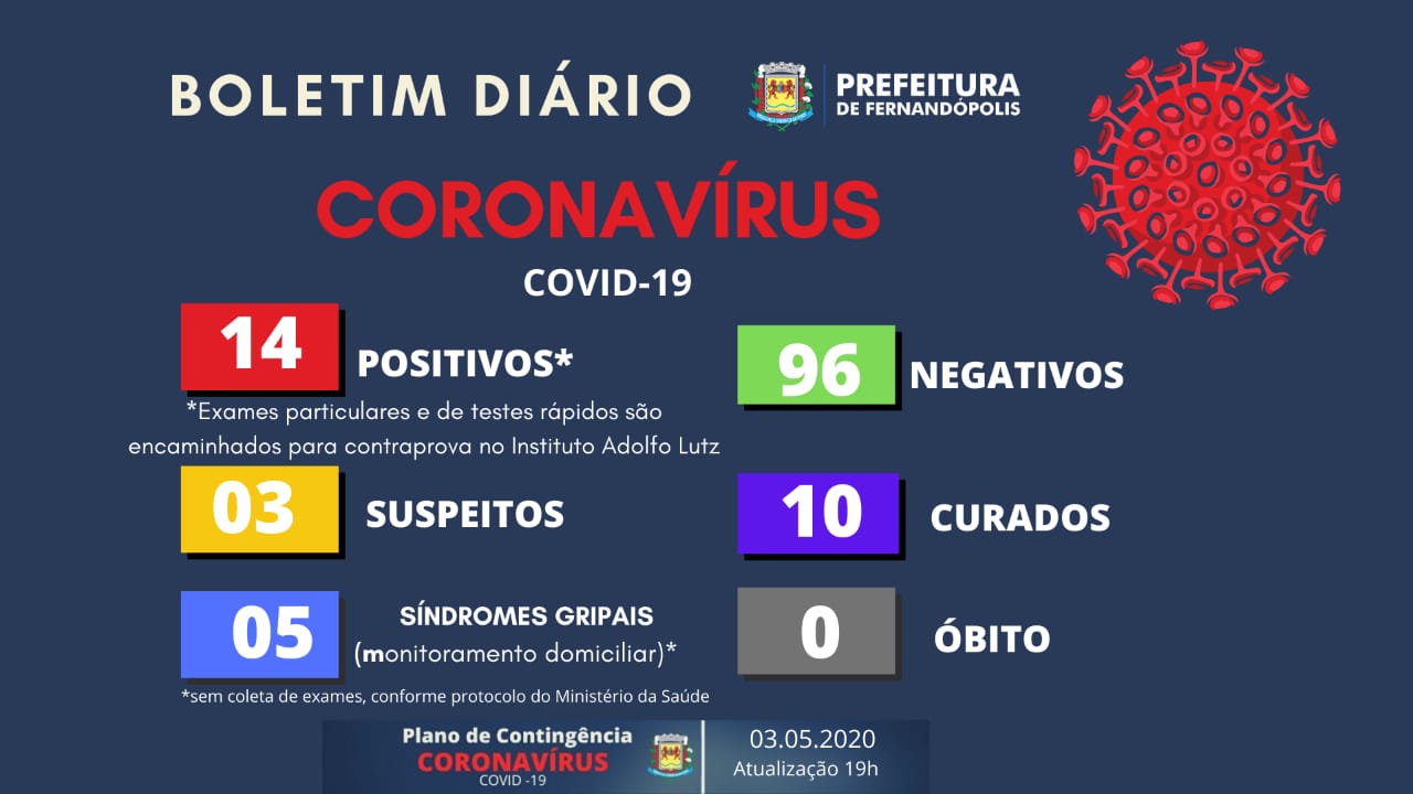 A Prefeitura de Fernandópolis emitiu mais um boletim epidemiológico divulgado com casos de coronavírus.