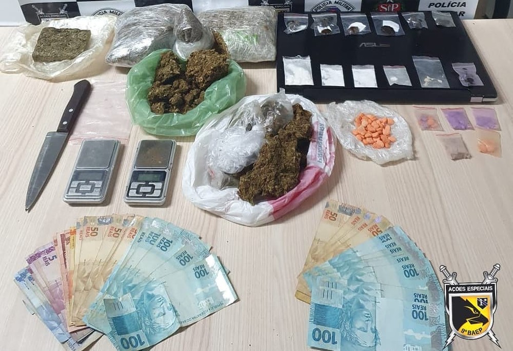 Drogas e dinheiro foram apreendidos com suspeitos em distrito de Rio Preto — Foto: Divulgação/BAEP