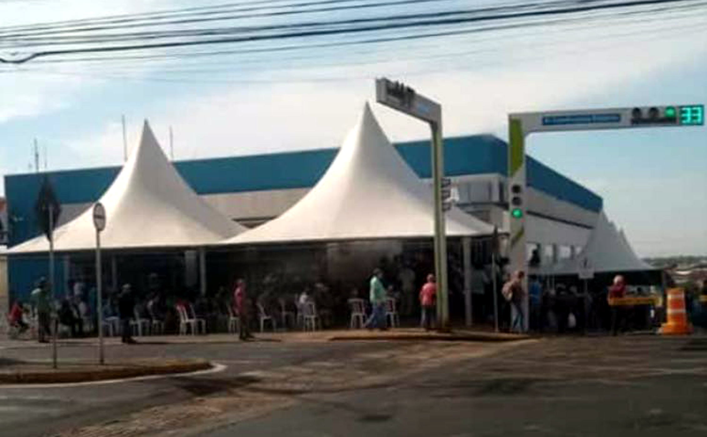 Tendas provisórias foram instaladas em frente à unidade de Fernandópolis. Foto: Facebook