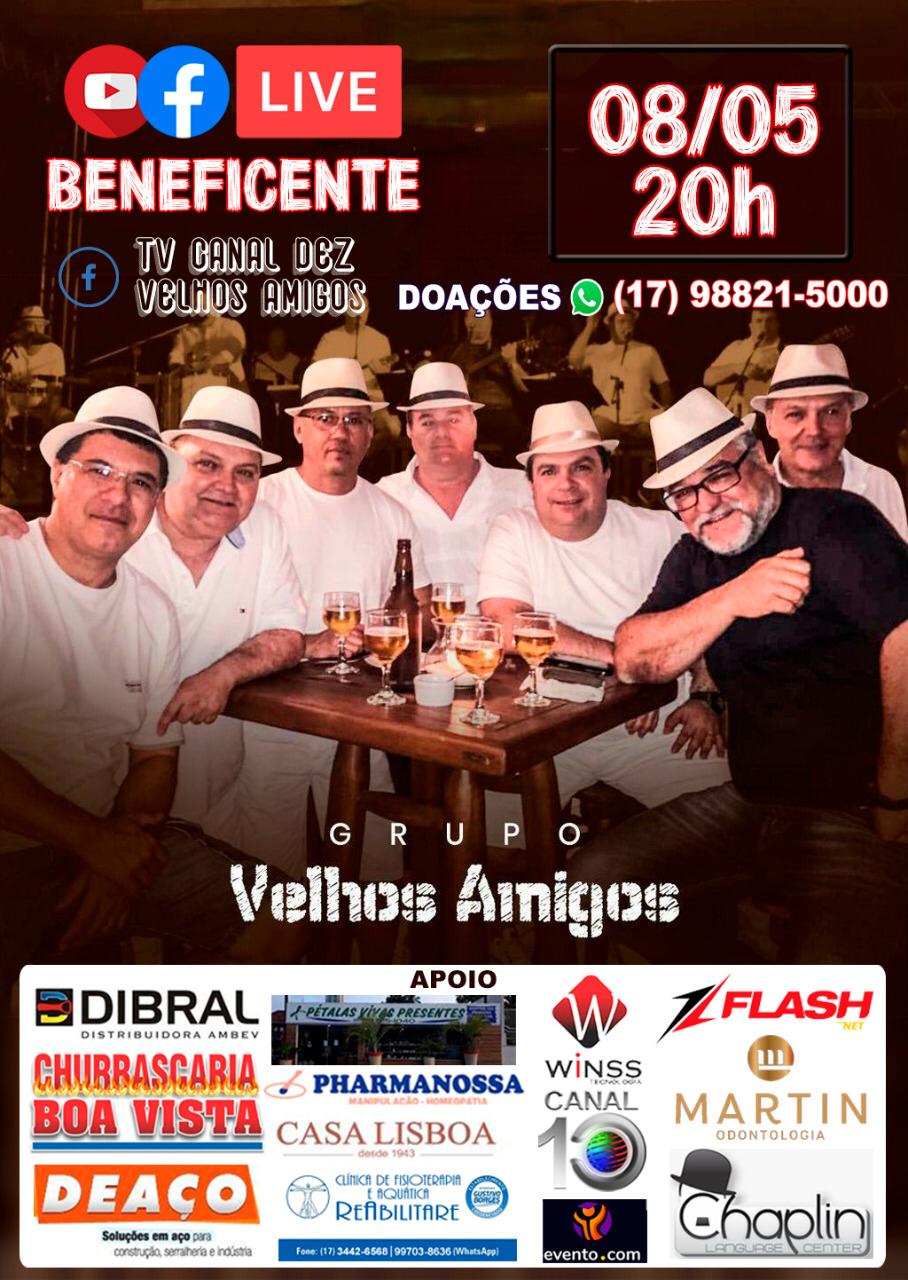 O grupo de samba e pagode fernandopolense Velhos Amigos vai realizar na sexta-feira, 8, uma live em prol do Projeto Caravana Solidária Benedita Fernandes, de assistência às famílias carentes do Bairro Ipanema e São Francisco, em Fernandópolis.