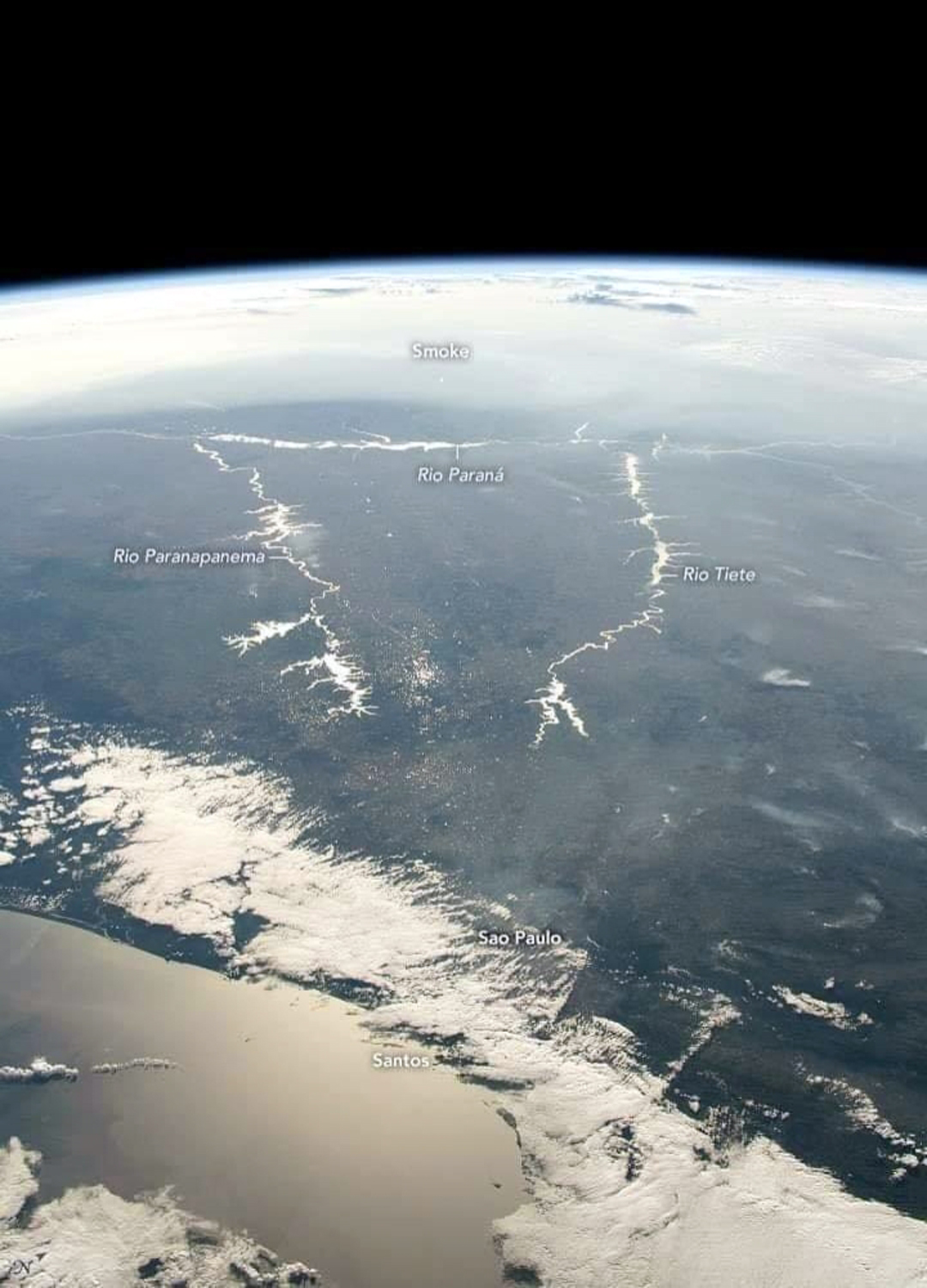O ponto negativo da bela imagem é a fumaça (smoke) na parte superior que, segundo a agência americana, "veio de incêndios que queimavam mais ao norte no Brasil e no Paraguai".