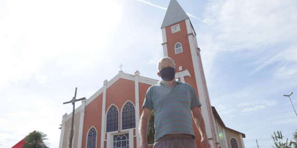 Aposentado Delson Morgado. "Não tenho medo. Saio dos lugares e tiro (a máscara). Eu fico mais em casa. Moro eu, Deus e Nossa Senhora" - Johnny Torres