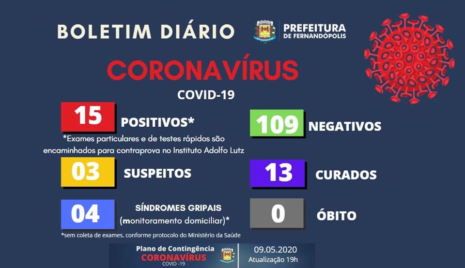 A Prefeitura de Fernandópolis divulgou neste sábado, 9, mais um boletim epidemiológico com casos de coronavírus no município.