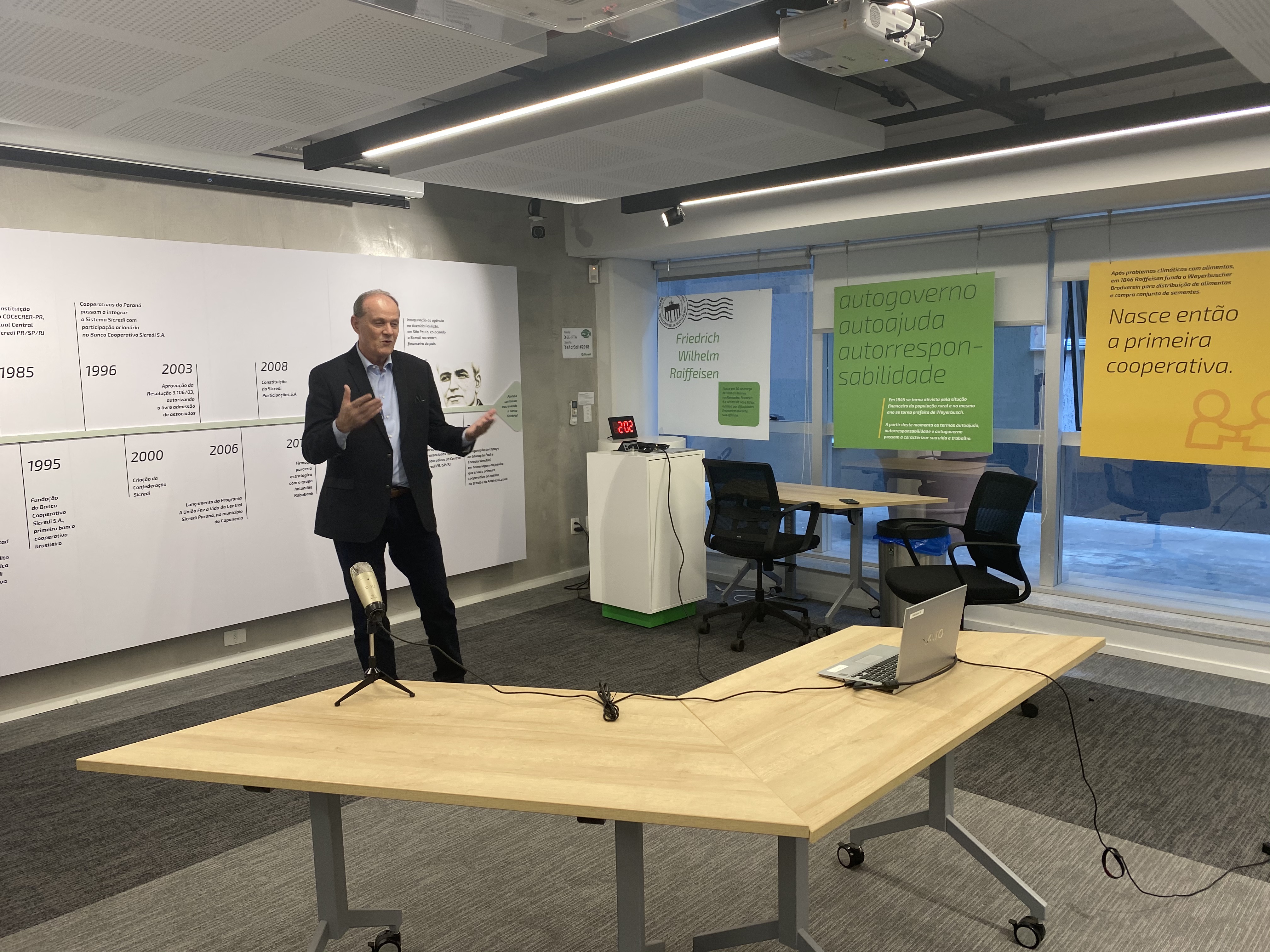 Na abertura do programa online, o presidente do Sicredi realizou um bate-papo com os participantes e respondeu algumas dúvidas dos jovens sobre governança, sistema cooperativo, princípios e valores do líder e a pandemia. Na ocasião, Dasenbrock presenteou os participantes com o seu mais novo livro "Pés no chão", que narra a trajetória do autor pelo Conselho Mundial das Cooperativas de Crédito (WOCCU).