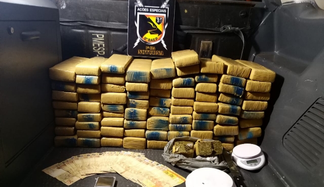 Foram apreendidos 77 tijolos de maconha além de R$ 3 mil em dinheiro na madrugada de ontem, 11, em Rio Preto, após abordagem a um casal de moto.