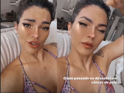 "No final do ano passado, eu descobri um câncer de pele quando eu estava em Portugal. Tirei e pediram para tirar um pouco mais. Junto com um pouco mais, tirei outras pintas que suspeitavam. O resultado é que era pré-cancerígenas.", informou a famosa, que realizará um novo procedimento nesta terça-feira para tirar uma pinta na região do rosto. "Hoje vou tirar um pouco mais. Vou ganhar uma cicatriz maior".