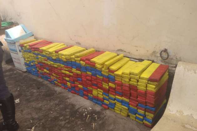 Parte dos tabletes de maconha apreendidos pela Polícia