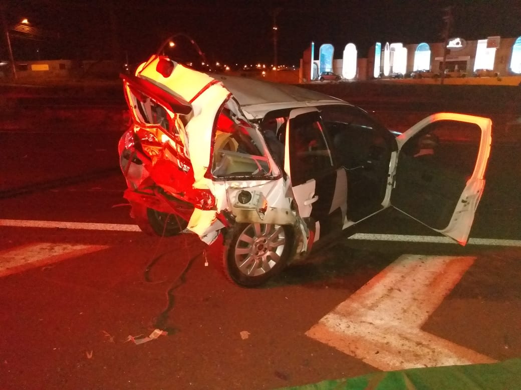 Imagens mostram traseira do veículo totalmente destruída