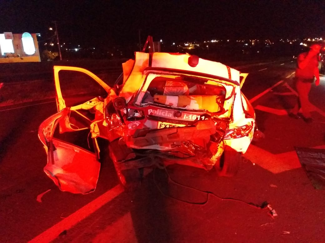 Veja imagens da viatura da PM que sofreu acidente nesta madrugada, em Fernandópolis