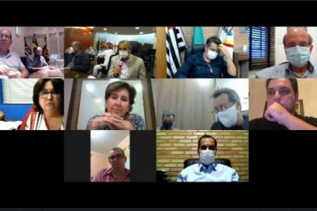 Prefeitos da região, inclusive o de Fernandópolis, durante reunião virtual: flexibilização de setores da economia