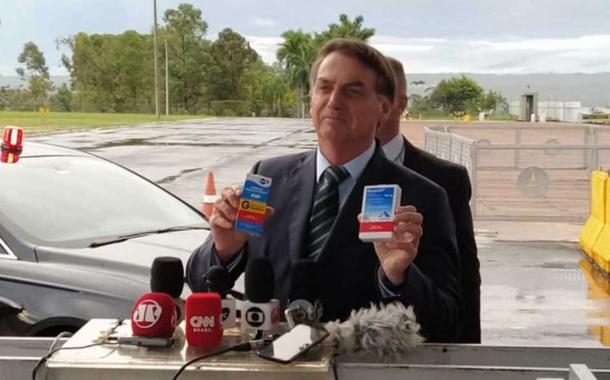Presidente exibe embalagens dos remédios que pretende utilizar no combate ao coronavírus. Foto: Divulgação
