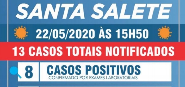O município de Santa Salete, encravada entre Jales e Santa Fé do Sul e que tem 1.523 habitantes confirmou que o número de casos confirmados de Covid-19 na cidade saltaram, num único dia, 400%.