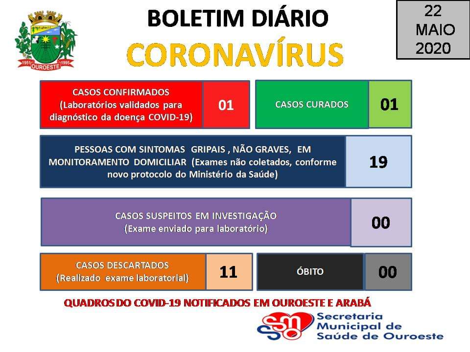 Segundo o Boletim Epidemiológico emitido pela Secretaria Municipal de Saúde, o teste deu negativo e o caso foi descartado como coronavirus.