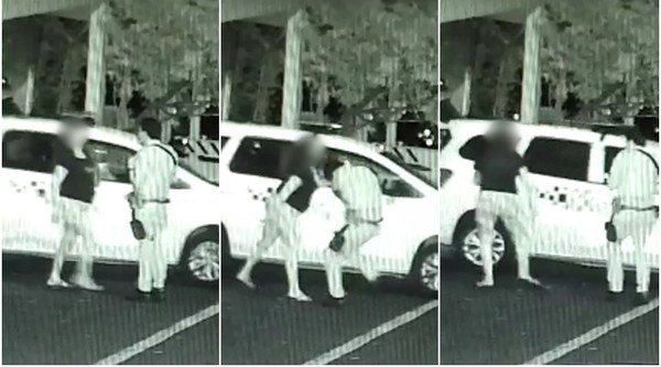 Nas imagens é possível ver a viatura policial parada na frente da casa da moradora. É possível ver o policial indo em direção ao carro. Ele entra, senta no banco do passageiro e tenta fechar a porta, mas a moradora o impede.