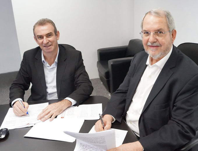 O prefeito Ademir Maschio e o e Carlos Flory do SP Preve. Foto: Prefeitura Municipal de Santa Fé do Sul