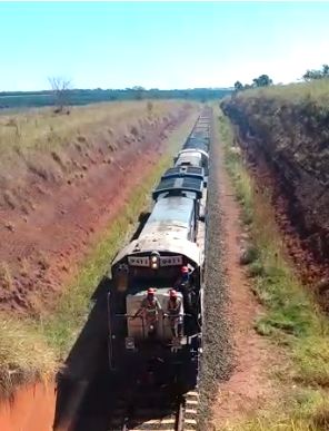 Vídeos gravados em Guarani d'Oeste mostraram trens da rodovia carregados de materiais