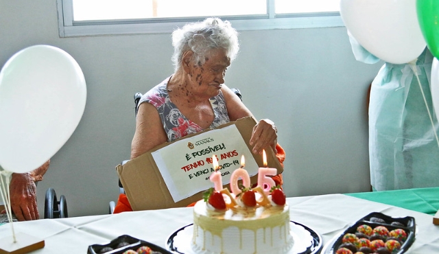 Além dela, outros 14 idosos, seis mulheres e nove homens, com idade entre 62 e 105 anos, também receberam alta, zerando o número de internações na Fundação. Dona Arminda comemorou o aniversário de 105 anos no dia 12 de maio, enquanto ainda estava internada.