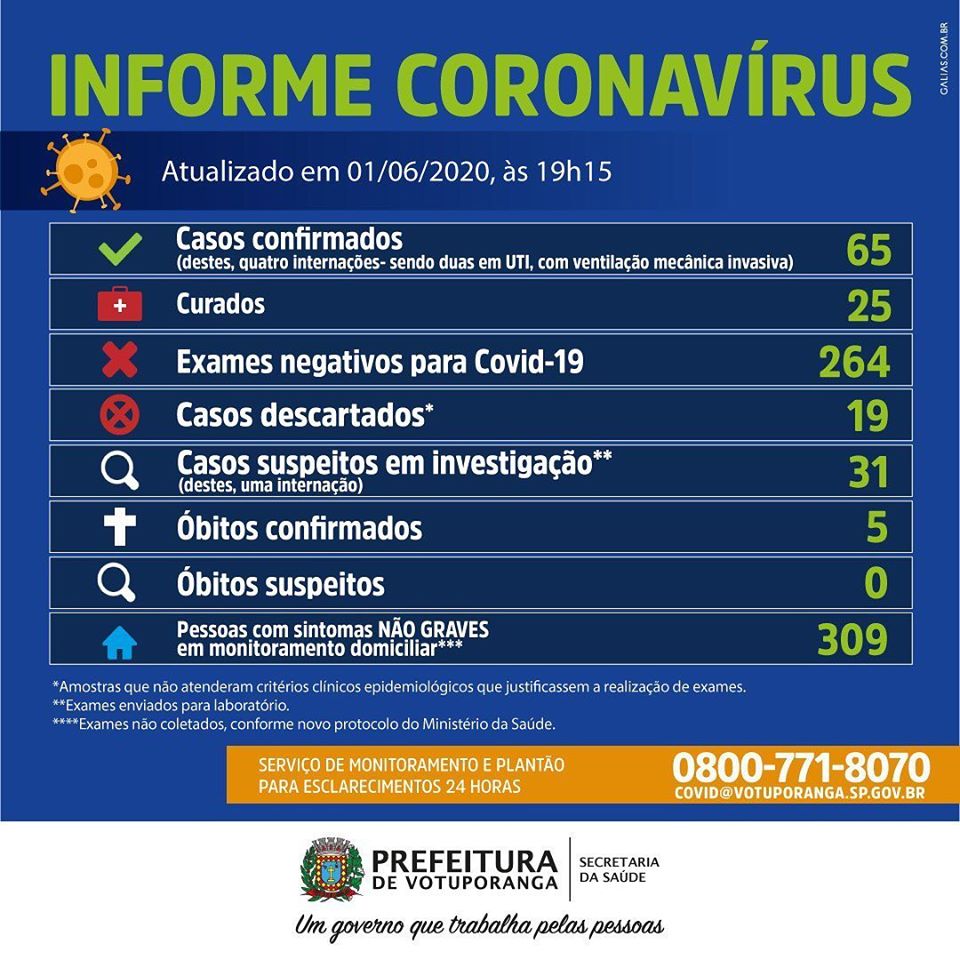Confira o informe completo com os números de Votuporanga: