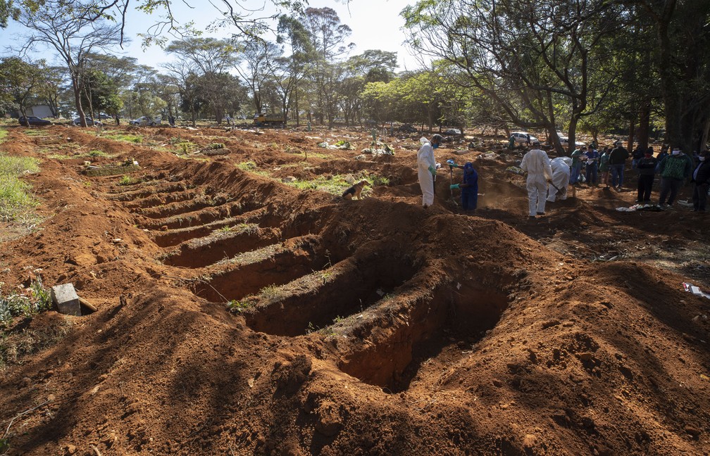 28 de maio de 2020 - Covas no no cemitério da Vila Formosa, em São Paulo, durante a pandemia do novo coronavírus (COVID-19) — Foto: Andre Penner/AP